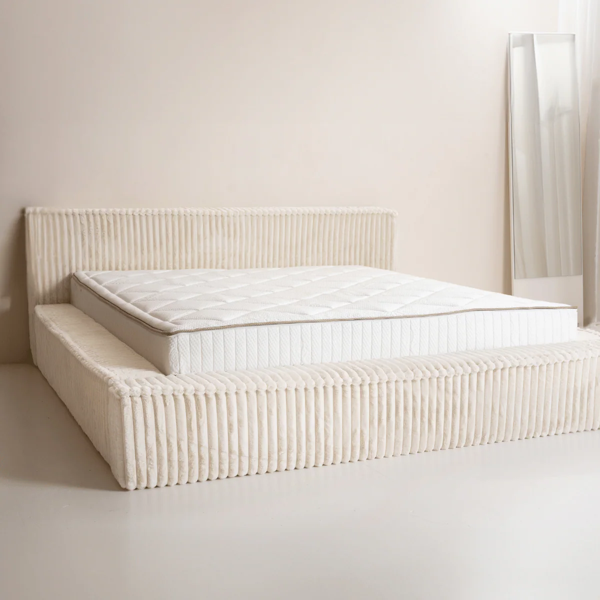 Onder het matras vind je handige opbergruimte waarin je beddengoed, kleding of andere spullen netjes kunt opbergen. De ruime opbergvakken helpen je slaapkamer georganiseerd en opgeruimd te houden, zodat je in een rustige en stijlvolle omgeving kunt ontspannen.