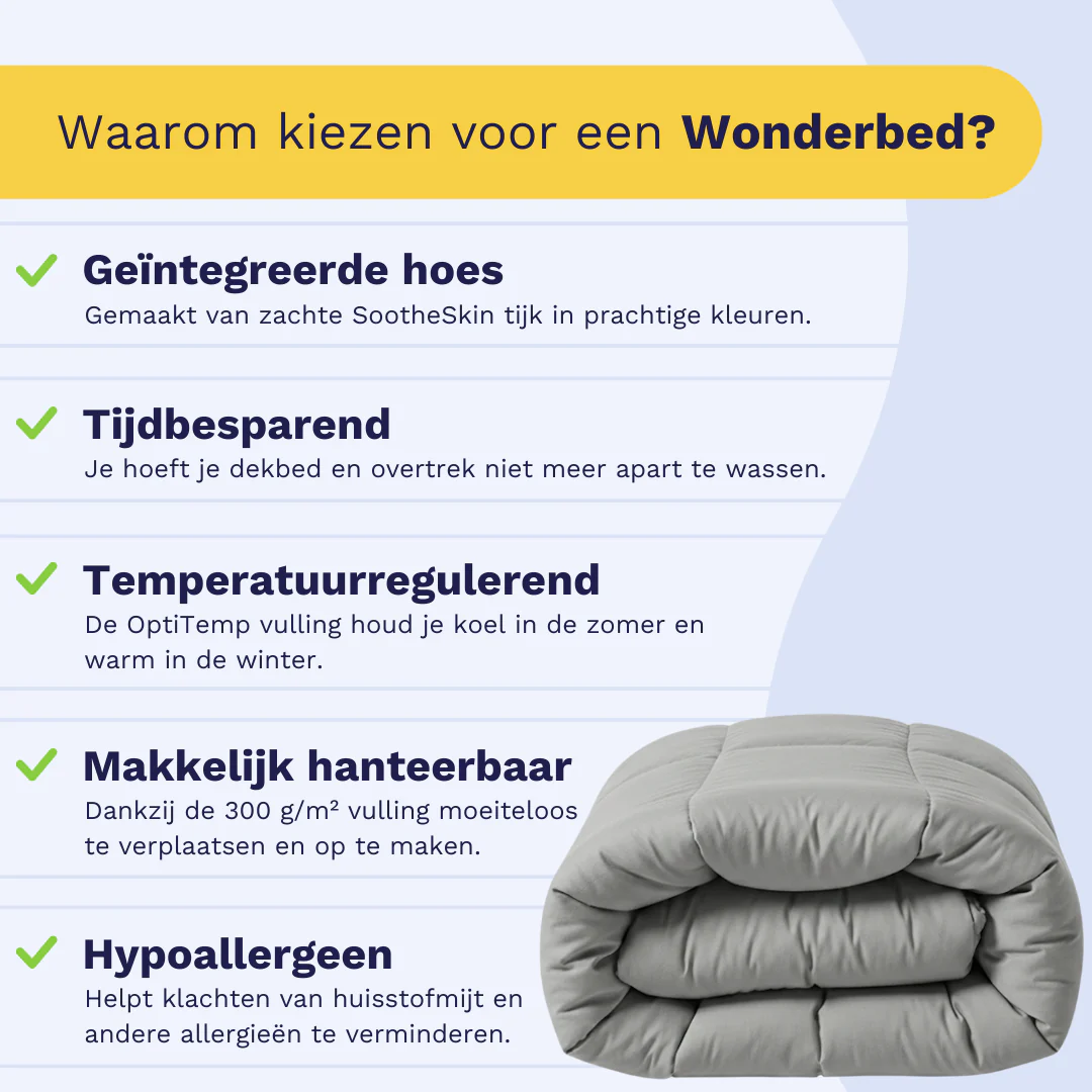 Met een vast overtrek was je dekbed en hoes niet meer apart. Dat betekent minder wasbeurten en minder energieverbruik. Een kleine verandering, die elke nacht weer verschil maakt.