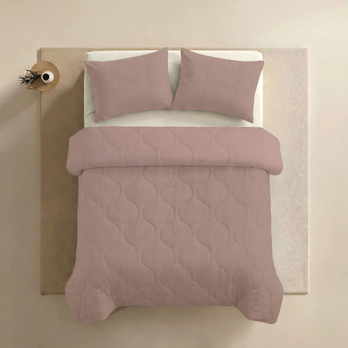 Hét zomerdekbed met seersucker — een stof die dit voorjaar razend populair is. Het voelt licht en luchtig aan, waardoor je ook tijdens warme nachten comfortabel onder een dekbed slaapt, zonder benauwd gevoel. In combinatie met de vaste overtrek houd je je bed makkelijk fris, ook wanneer je het vaker wilt wassen.